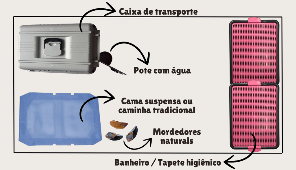 Caixa de Transporte: A caixa de transporte serve como uma “toca” e não deve ser vista como punição. A caixa será o lugar de descanso e segurança, similar ao que seria o nosso quarto, onde o cachorro irá dormir durante a noite e passar períodos durante o dia quando não puder ser supervisionado. Essa adaptação é essencial para ensinar o cachorro a ficar tranquilo na sua ausência e relaxar. Ela deve ficar em um ambiente tranquilo da casa, ventilado ou climatizado com ar-condicionado.