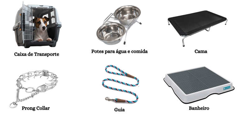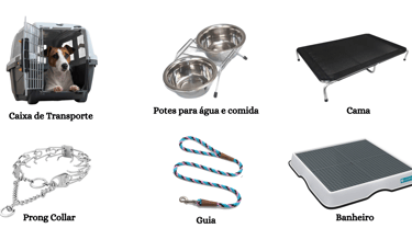Essa seria a minha indicação de kit básico com objetivo de treinamento para qualquer cachorro. A alimentação, produtos de higiene, brinquedos, petiscos irão depender de cada indivíduo.